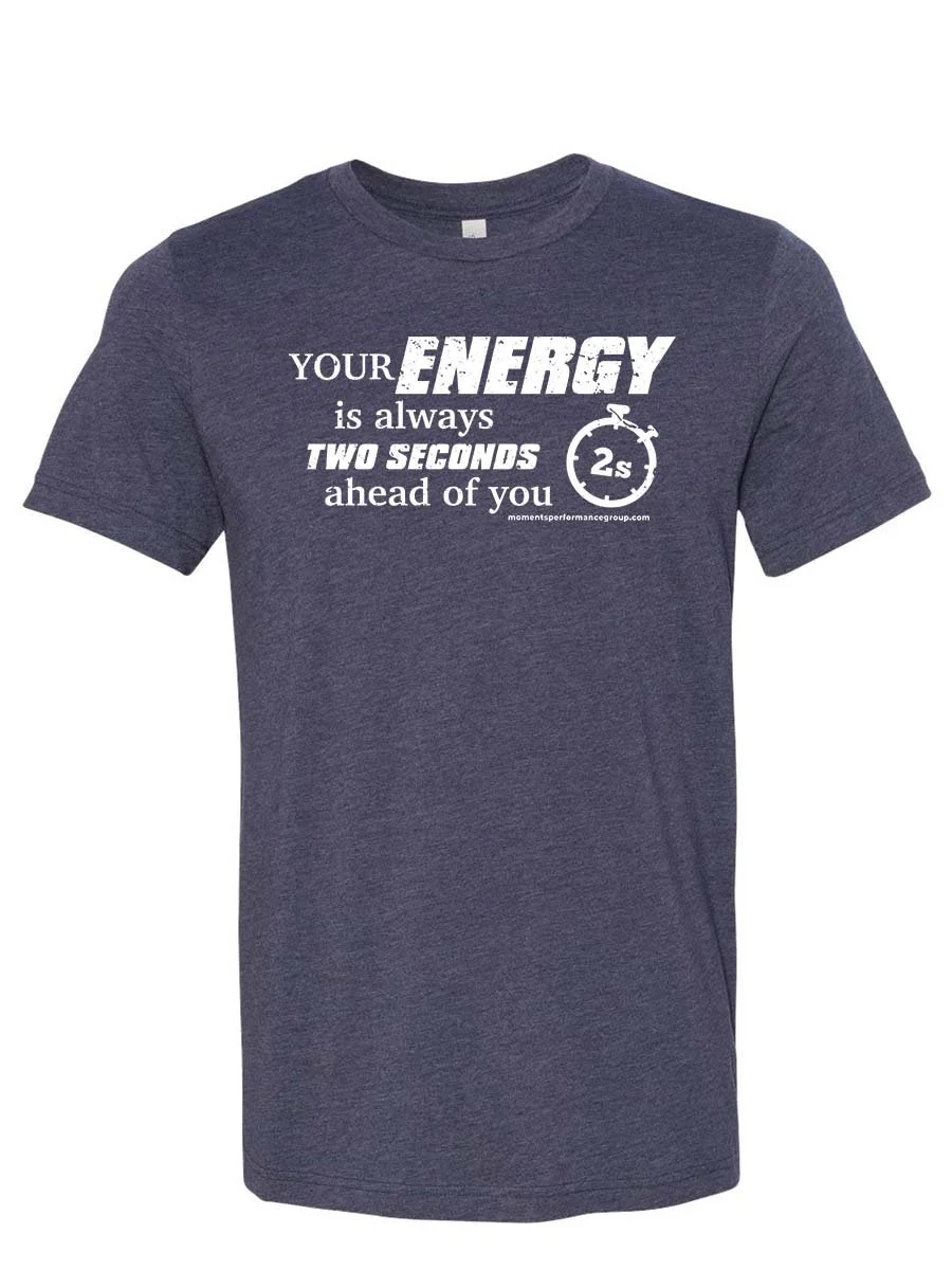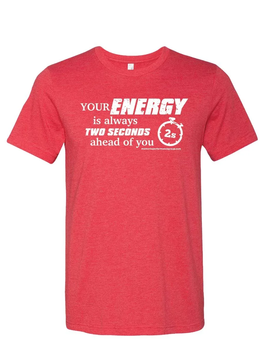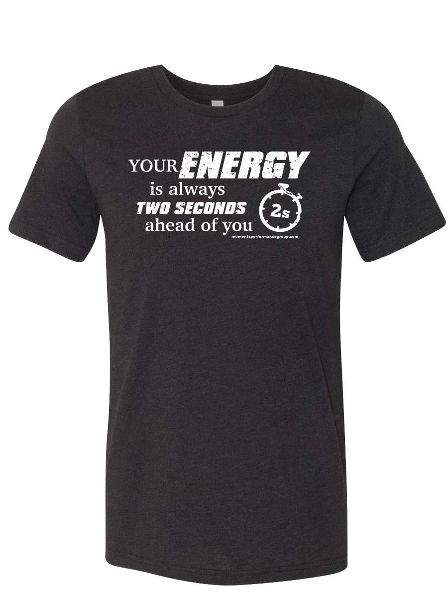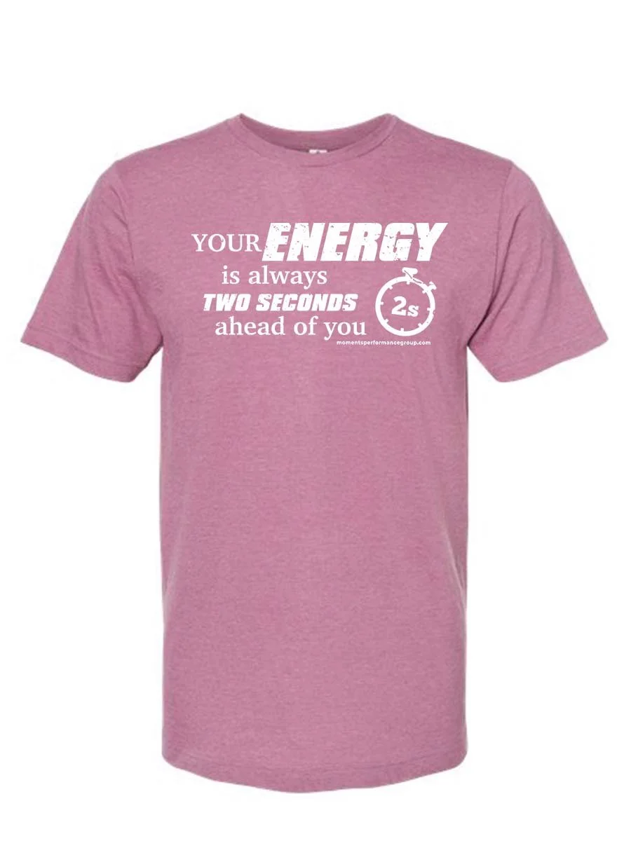 We only use t-shirts that feel soft to the touch and people love wearing them.This soft, heathered t-shirt features a reminder to bring your energy, as it is always 2 seconds ahead of you! Let’s do this!