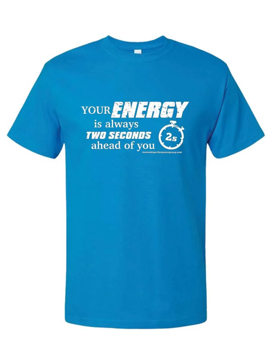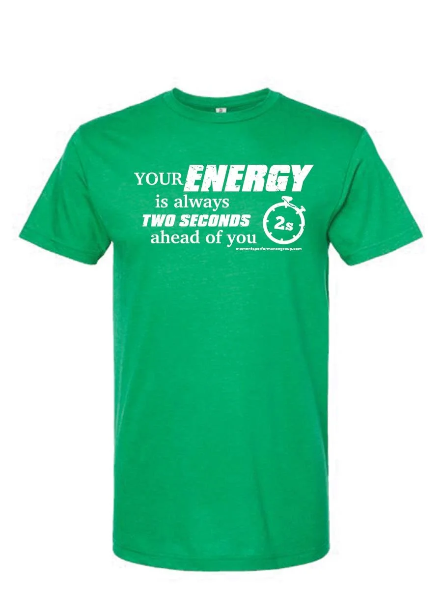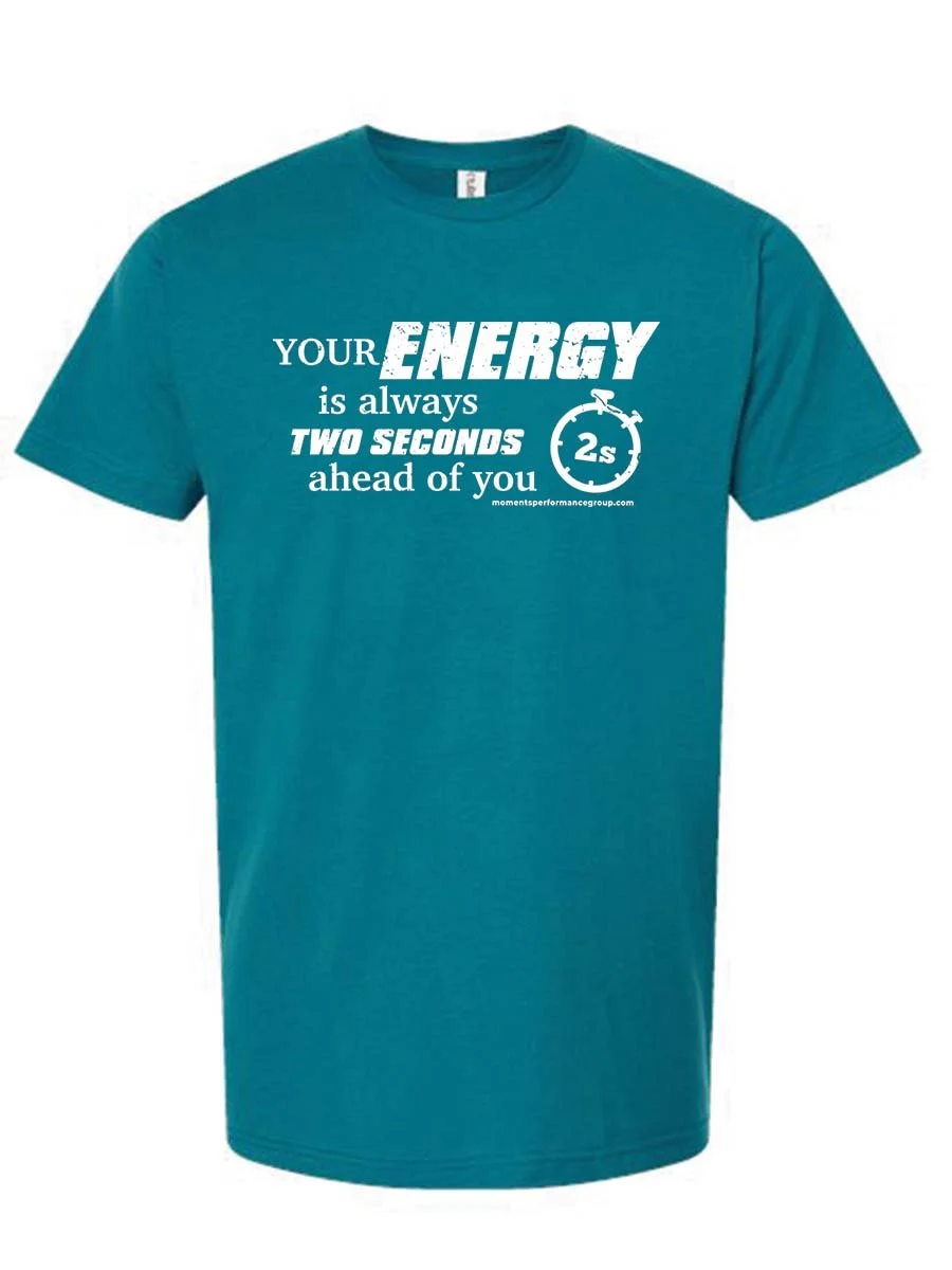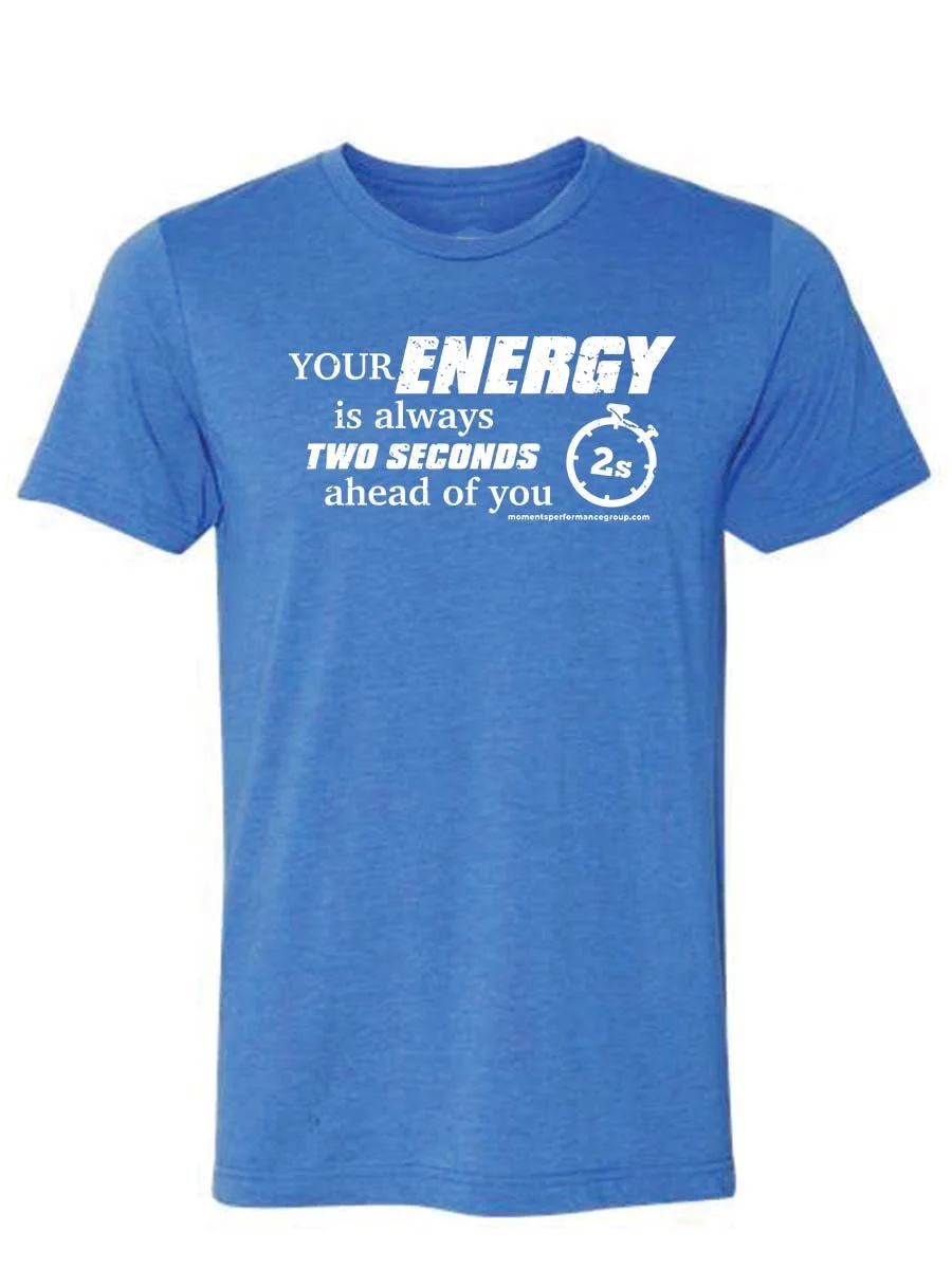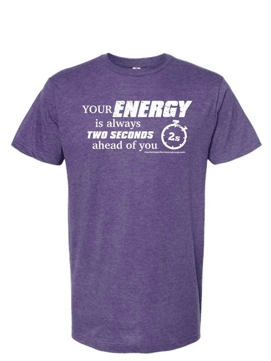 We only use t-shirts that feel soft to the touch and people love wearing them.This soft, heathered t-shirt features a reminder to bring your energy, as it is always 2 seconds ahead of you! Let’s do this!